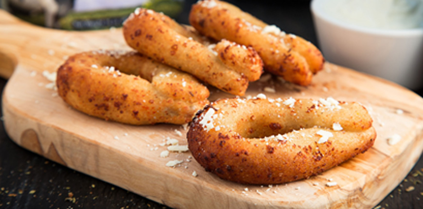 4. Colocar un sartén aceite Puroleina para que la Mandoca no absorba el aceite y al estar caliente colocar las Mandocas hasta quedar fritas o doradas. Acompañar con cremas o salsas y queso llanero blanco.